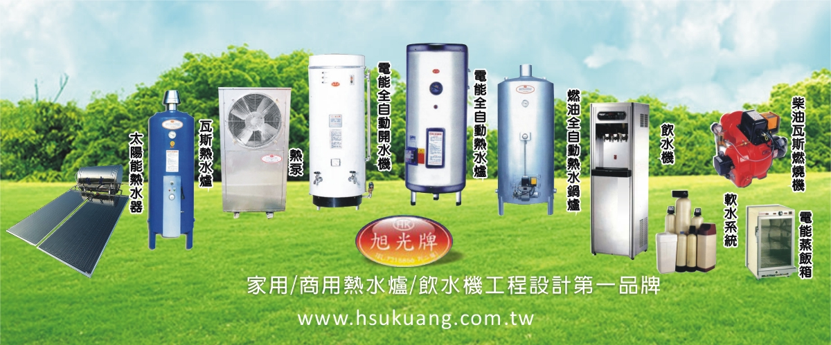 旭光熱能工業有限公司 - 瓦斯熱水爐、熱泵、飲水機、太陽能熱水器、電能熱水爐